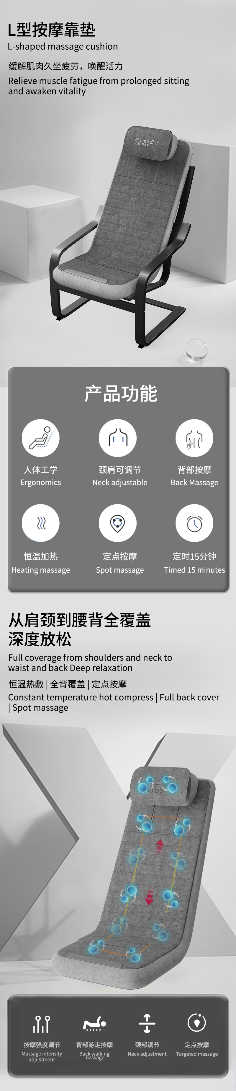 3、力度三檔調(diào)節(jié),頸部揉捏,定點按摩,腰背按摩、臀腿按摩、全背按摩模式選擇