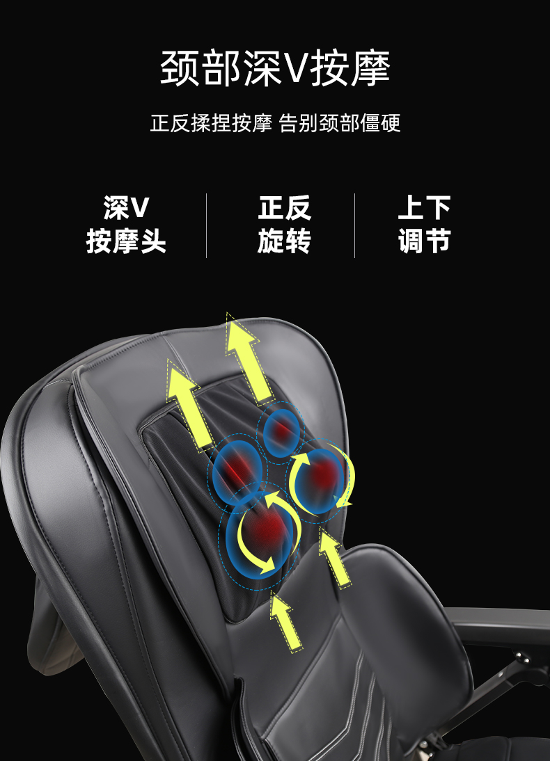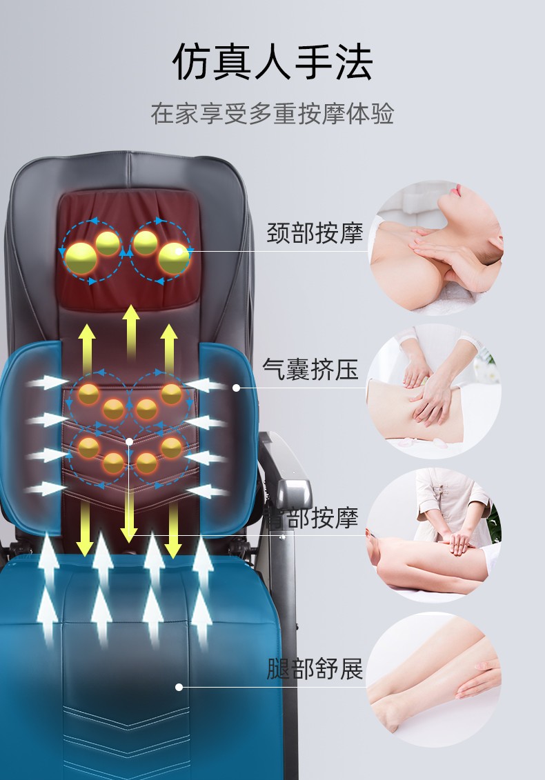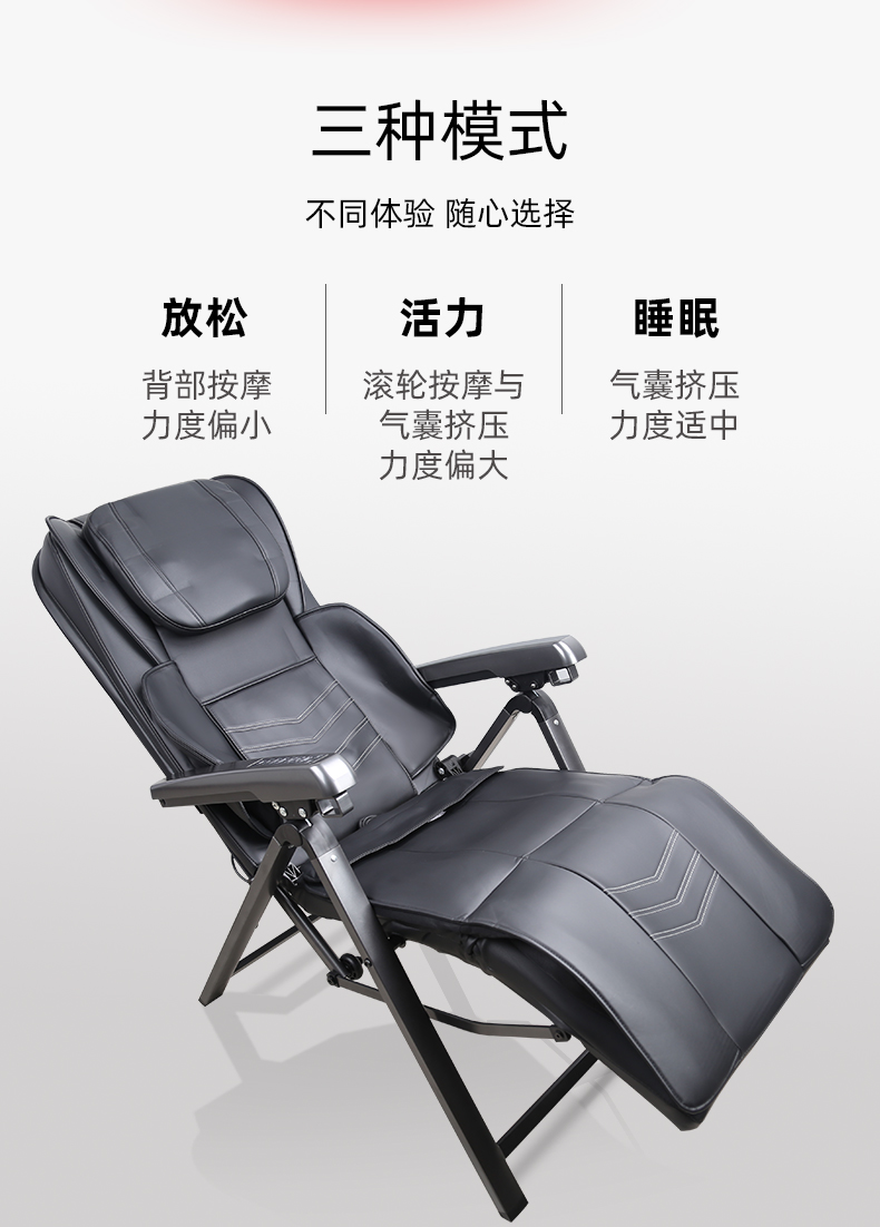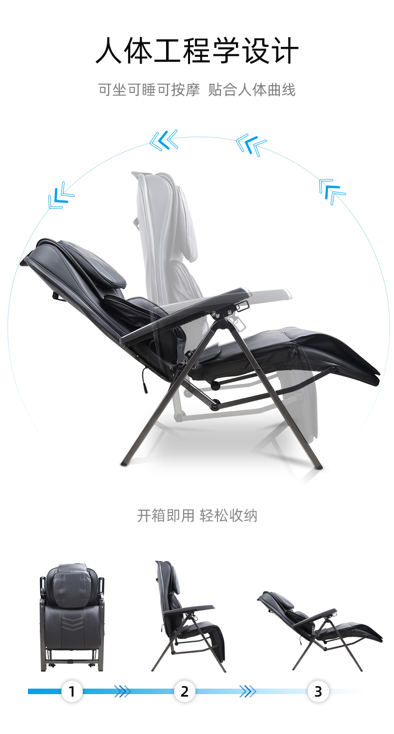 折疊式按摩椅1.頸部:創(chuàng)新壓肩按摩,正反轉(zhuǎn)揉捏,上下可調(diào)節(jié)高矮適應(yīng)不同人。